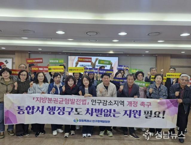 창원특례시는 4월 21일 마산합포구청 중회의실에서 마산합포구 이·통장연합회와 함께 통합시 행정구의 인구감소(관심)지역 지정 필요성을 알리는 시민캠페인을 실시했다고 밝혔다.
