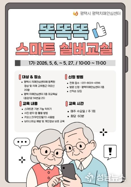 평택치매안심센터는 오는 5월 6일부터 27일까지 치매 예방 및 인지 기능 강화를 위한 ‘똑똑똑 스마트 실버교실’을 운영한다고 밝혔다.