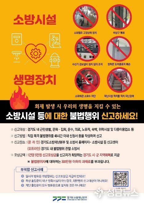 남양주소방서는 22일, 화재 발생 시 인명과 재산 피해를 최소화하기 위해 ‘소방시설 등 불법행위 신고포상제’ 홍보에 나선다고 밝혔다.