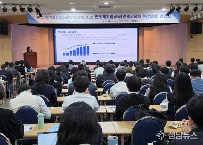 경기도교육청이 22일 경기도경제과학진흥원에서 한국나노기술원과 함께 도내 직업계고 학생의 나노·반도체 분야 인재 육성을 위한 ‘2026 나노융합기술인력 양성사업 및 취업 지원’ 공동설명회를 개최했다.