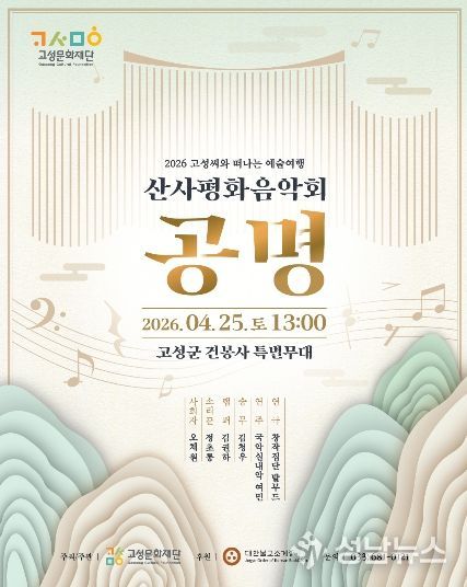 평화 경제 거점 도시 강원 고성군 산하 (재)고성문화재단은 오는 4월 25일(토) 오후 1시, 고성군 건봉사에서 산사평화음악회 『공명』을 개최한다.