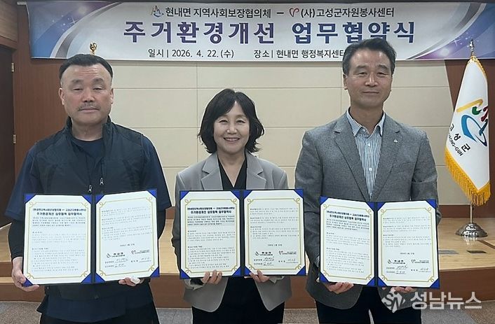 이날 협약식에는 현내면 공공위원장을 비롯한 행정 관계자와 고성군자원봉사센터장, 정리수납 관계자 등 총 14명이 참석했으며, 협약에 따라 저장 강박 등으로 주거환경 개선이 필요한 대상 가구를 발굴·추천하고, 월별 활동실적 확인 후 관련 기준에 따라 자원봉사활동비를 지원할 예정이다.