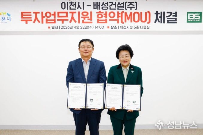 이천시가 22일 배성건설㈜와 203억 원 규모의 투자업무지원협약을 체결하고, 기업의 신규 공장 신설을 본격 지원한다.