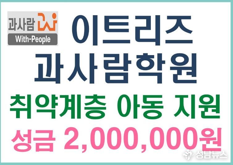 이번 성금은 경제적 어려움을 겪고 있는 저소득 취약계층 아동 20명의 학업 지원을 위해 마련됐으며, ㈜이트리즈 과사람학원은 매년 상·하반기 저소득 아동을 위한 후원을 꾸준히 이어오며 지역사회 나눔 문화 확산에 기여하고 있다.