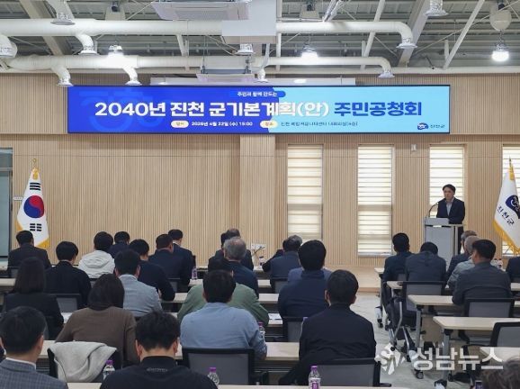 충북 진천군은 지속가능한 미래 발전 방향 모색과 주민의 목소리 청취를 위해 진천읍 복합커뮤니티센터에서 2040년 진천 군 기본계획(안) 공청회를 개최했다고 22일 밝혔다.