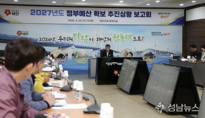 태안군이 22일 군청 중회의실에서 이주영 부군수와 각 부서장 등 30여 명이 참석한 가운데 ‘2027년도 정부예산 확보 추진 상황 보고회’를 열고 부처 예산안 반영 현황을 점검하며 세부 대응 전략 논의에 나섰다.