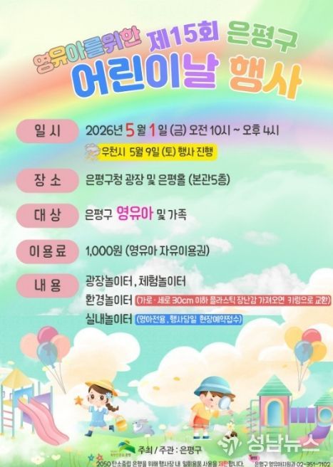 서울 은평구는 어린이날을 맞아 내달 1일 은평구청 광장과 은평홀에서 ‘제15회 영유아를 위한 어린이날 행사’를 개최한다고 밝혔다.