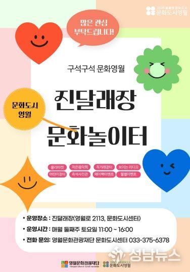 (재)영월문화관광재단은 오는 8월 30일까지 ‘진달래장 문화놀이터’ 참여자를 수시 모집한다고 밝혔다.