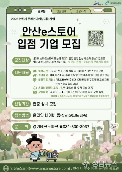 이민근 안산시장은 “안산e스토어가 관내 중소기업의 우수 제품을 널리 알리고 온라인 판로를 넓히는 실질적인 지원 창구가 되길 바란다”며 “기업에는 성장 기회를, 지역경제에는 활력을 더할 수 있도록 지속적으로 지원하겠다”고 말했다.