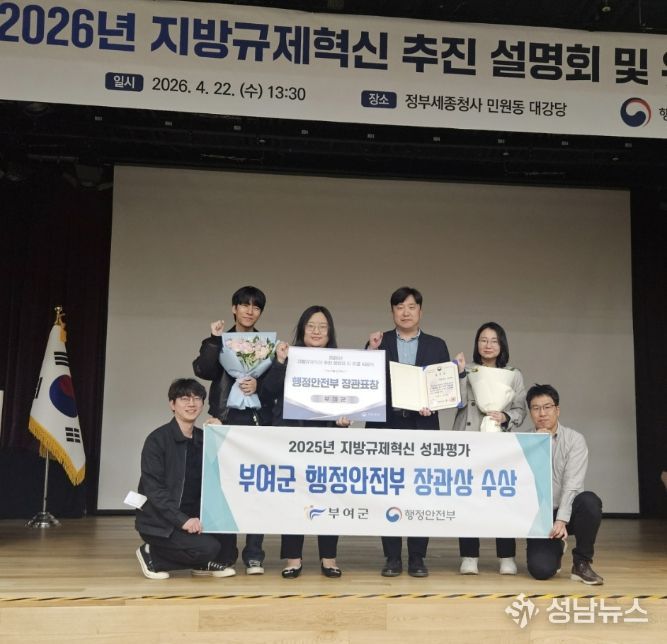 충남 부여군은 행정안전부 주관‘2025 지방자치단체 규제혁신 추진 성과평가’에서 행정안전부 장관 표창을 받았다고 23일 밝혔다.
