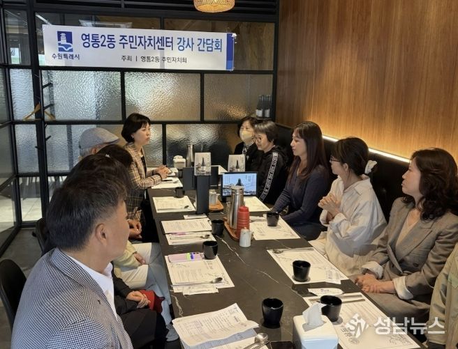 수원시 영통구 영통2동은 지난 22일 영통2동 주민자치회가 주민자치센터 프로그램 운영과 관련한 다양한 의견을 수렴하고, 보다 내실 있는 운영과 활성화 방안을 모색하기 위해 주민자치센터 프로그램 강사진과의 간담회를 개최했다고 밝혔다.