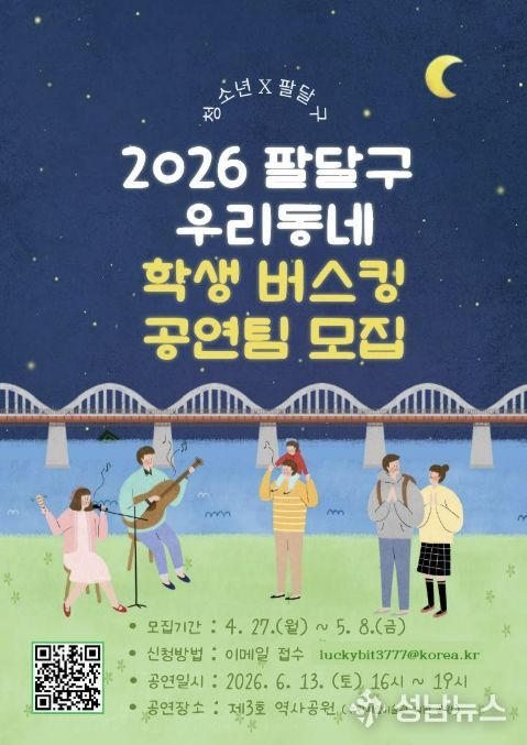 수원시 팔달구가 청소년들이 직접 주인공이 되어 공연에 참여하고 즐기는 ‘2026 팔달구 우리동네 학생 버스킹’의 공연팀을 모집한다고 밝혔다.
