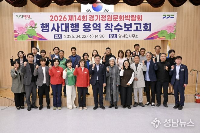 양평군은 오는 10월 개최 예정인 ‘2026 제14회 경기정원문화박람회’의 성공적인 추진을 위해 지난 22일 양서면사무소에서 행사 대행 용역 착수보고회를 개최했다고 밝혔다.