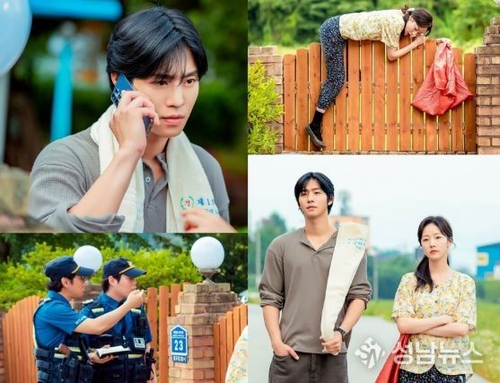 특히 담예진은 꽃무늬 일바지, 흙먼지 묻은 고무신으로 어딘가 정겨워진 패션을 자랑하는 것은 물론 손에 포대자루까지 쥐고 있어 수상함을 더한다. 좀처럼 소강되지 않는 갈등에 급기야 경찰까지 출동해 뜨거운 여름날 벌어진 무단침입 사태의 전말이 궁금해진다.