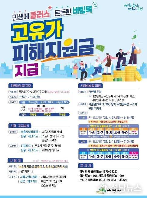 은평구는 신청 과정에서의 불편을 줄이기 위한 현장 대응 체계도 함께 가동한다. 고령자 및 장애인 등 거동이 불편한 주민을 위해 동 주민센터에서 직접 방문해 신청을 돕는 ‘찾아가는 신청 서비스’를 운영한다. 신청 방법과 지급 기준, 사용처 안내 등을 위한 전담 콜센터도 운영할 계획이다.