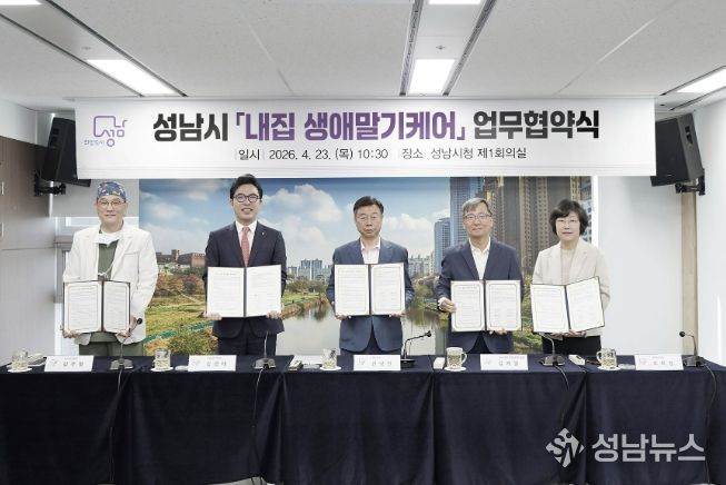 시는 4월 23일 오전 10시 30분 시청 4층 제1회의실에서 성남시의사회, 성남시의료원, 새한베스트의원, 집으로의원, 홈닥터의원과 ‘내집 생애말기케어 사업 추진을 위한 업무협약’을 체결했다.
