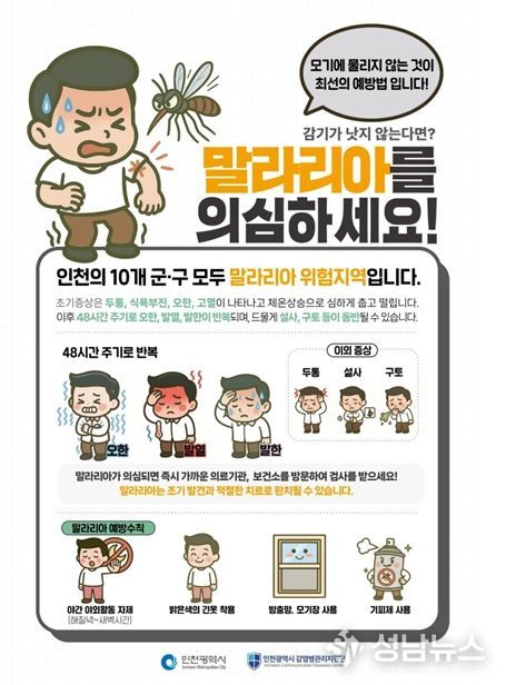 인천광역시는 오는 4월 25일 ‘세계 말라리아의 날’을 맞아 본격적인 모기 활동 시기에 대비해 시민들에게 국내 말라리아 감염 예방과 조기 검사의 중요성을 당부했다.