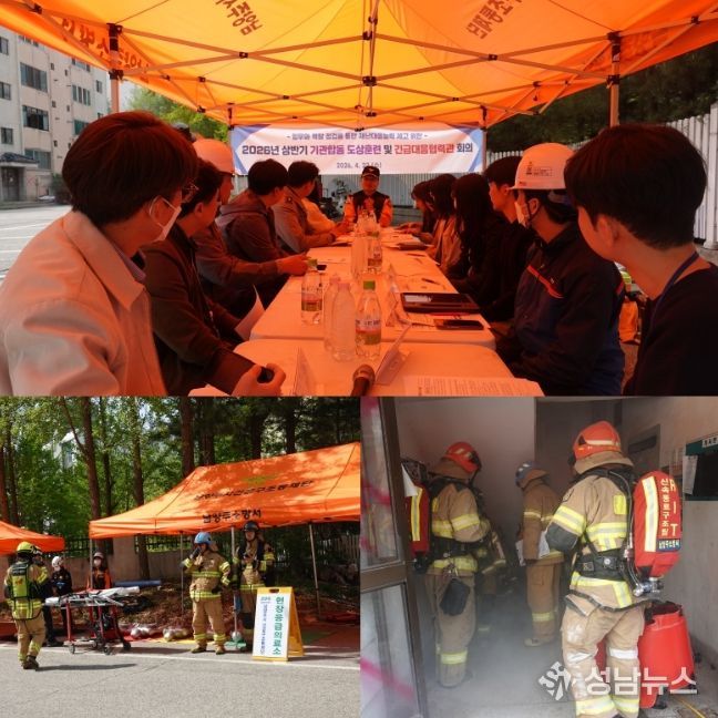 남양주소방서는 지난 22일 금곡동 재개발 아파트 일원에서 ‘2026년 상반기 기관합동 도상훈련 및 긴급대응협력관 회의’를 실시하고, ‘지하층 화재진압 및 인명구조 특별구조훈련’을 병행 추진했다고 밝혔다.