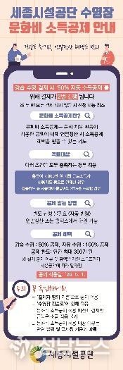 세종특별자치시시설관리공단은 수영장 이용 고객의 편익 증진을 위해 온라인·현장 결제 시스템 개선을 완료하고, 오는 5월 강습분(5월 1일 결제분)부터 문화비 소득공제 혜택을 적용한다고 밝혔다.