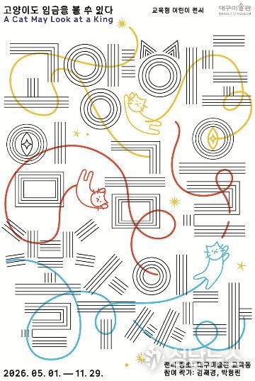 대구문화예술진흥원 대구미술관은 개관 15주년과 5월 가정의 달을 맞이하여, 온 가족이 예술로 소통하고 공감할 수 있는 교육형 어린이 전시와 특별 워크숍을 개최한다. 먼저 대구미술관은 오는 5월 1일부터 11월 29일까지 세상을 바라보는 새로운 시선을 제안하는 교육형 어린이 전시 ‘고양이도 임금을 볼 수 있다(A Cat May Look at a King)’를 선보인다.