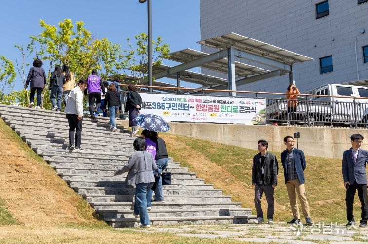 마포구는 마포365구민센터와 한강공원을 연결하는 녹색 보행로인 ‘잔디로’를 조성하고 4월 24일 오전 준공식을 개최했다.