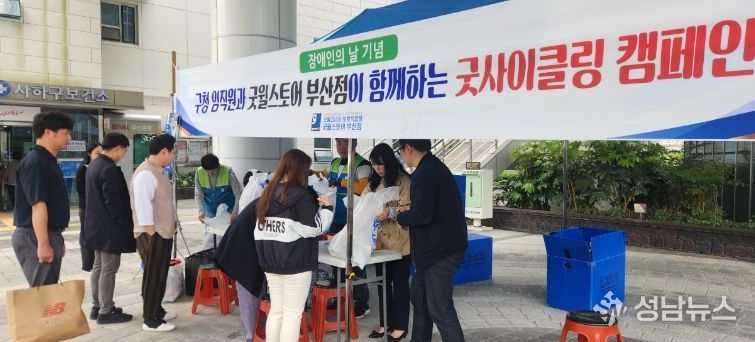 부산 사하구는 제46회 장애인의 날(4월 20일)을 맞아 지난 4월 23일 사하구청 본청 및 제2청사에서 중증장애인 직업재활시설 ‘굿윌코리아 보호작업장’(시설장 김성태)과 함께 '굿사이클링' 기부 물품 나눔 행사를 개최했다.