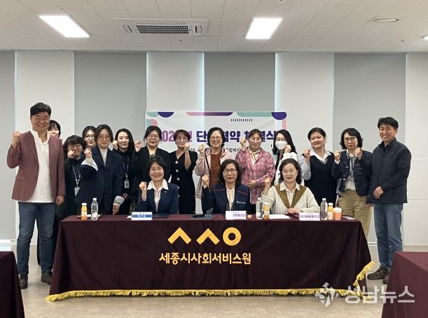 (재)세종시사회서비스원(원장 이기순) 산하 아이돌봄서비스제공기관(센터장 김지현)은 23일 원내에서 공공&돌봄노동조합과 단체협약 체결식을 개최하고, 돌봄서비스의 질 향상과 종사자 권익 증진을 위한 상호 협력을 약속했다.