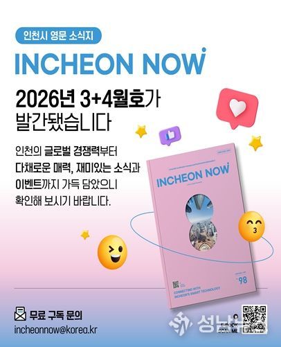 인천광역시는 도시의 혁신적인 정책과 차별화된 매력을 전 세계에 소개하는 영문소식지 '인천나우(Incheon Now)' 3·4월호(Vol. 98)를 발간했다고 밝혔다.