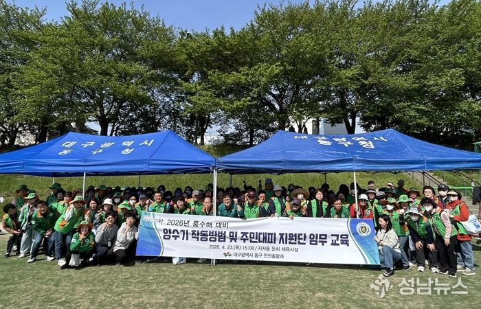 대구 동구청은 지난 23일, 지저동 둔치 체육시설에서 동구 지역자율방재단 단원 및 관내 22개 동 행정복지센터 재난안전담당자 120여명이 참여한 가운데 양수기 작동법 및 주민대피지원단 임무 교육을 실시했다.