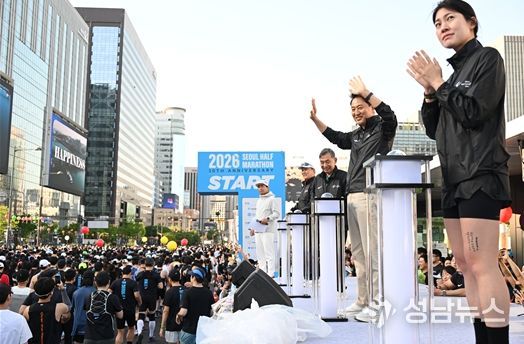 오세훈 서울시장은 26일 오전 광화문광장에서 열린 ‘2026 서울하프마라톤대회' 출발식에서 참가자들을 응원하고 안전한 완주를 당부했다.