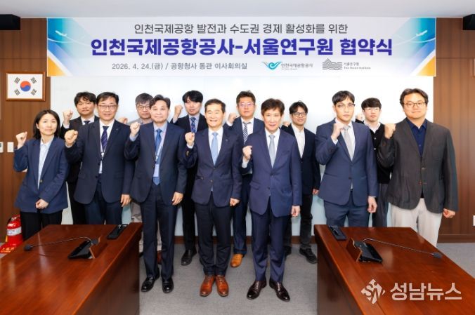 인천국제공항공사는 지난 24일 청사 회의실에서 서울연구원과 ‘상호협력 및 연구 네트워크 강화를 위한 업무협약’을 체결했다고 26일 밝혔다.