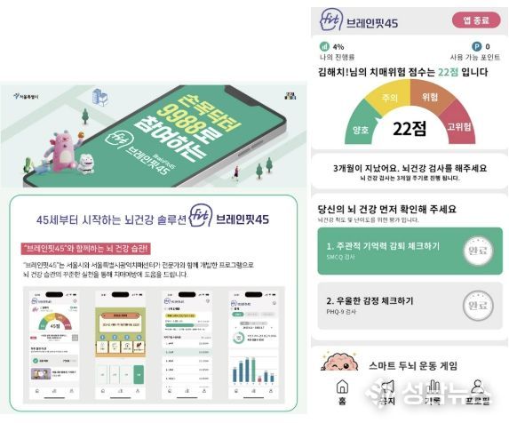 서울 성북구치매안심센터가 성북구민을 대상으로 모바일 기반 인지건강 관리 서비스 ‘브레인핏45’ 애플리케이션의 설치와 이용 지원에 나섰다. 치매의 골든타임으로 불리는 중년기부터 예방적 관리 체계를 강화하기 위한 취지다.