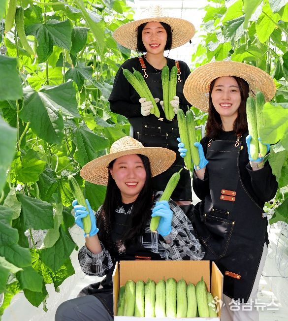 가시 돋친 오이를 능숙하게 따 내려가는 이들은 ‘오이유 농장’의 공동대표 이미옥(28), 백솔뫼(34), 이유정(27) 씨다.