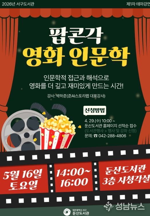 테마 강연은 내달 16일 오후 2시 둔산도서관 3층 시청각실에서 열린다. 영화의 서사와 캐릭터를 중심으로 주요 장면을 함께 감상하며, 재미와 깊이를 더할 수 있도록 마련된다.