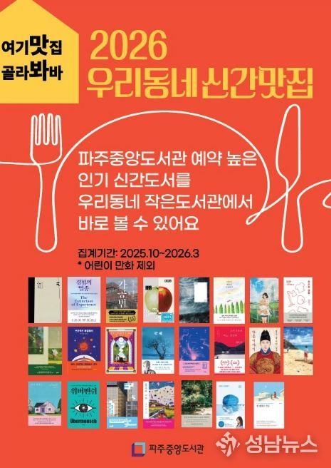 파주시 중앙도서관은 지역 내 작은도서관 활성화를 위해 2024년부터 추진해 온 '우리동네 신간맛집' 사업을 지난 23일부터 관내 13개 작은도서관과 함께 본격 운영하고 있다.