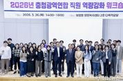 충청광역연합이 4개 시·도(대전·세종·충북·충남) 파견 직원들의 정책 이해도를 높이고 조직 결속력을 다지기 위한 본격적인 역량 강화 행보에 나섰다. 충청광역연합은 3월 26일 보람동 행복누림터에서 전 직원을 대상으로 ‘2026년 충청광역연합 직원 역량강화 워크숍’을 개최했다고 밝혔다. 이번 워크숍은 연합 직원들이 연합의 설립 취지와 주요 정책을 빠르게 숙지하고 향후 충청권 행정환경 변화에 능동적으로 대응할 수 있도록 마련됐다. 이날 워크숍에서는 최민호 충청광역연합장이 직접 강사로 나서 ‘행정환경에 따른 연합의 역할’을 주제로 특강을 진행했다. 최 연합장은 특강을 통해 초광역 협력체의 필요성을 강조하며, 충청권의 공동 번영을 위한 직원들의 사명감과 역할을 당부했다. 특히, 현대의 시대정신이 ‘에너지 확보, 기술 인력 양성, 기업 우호적 환경 조성, 물관리’임을 강조하며, 시대정신을 반영한 정책을 구상하고 추진하는 것이 공직자에게 필요한 자세라고 힘주어 말했다. 이어지는 강의에서는 대전연구원 염인섭 책임연구위원이 ‘연합의 출범 배경 및 역사, 주요 정책’을 주제로 심도 있는
