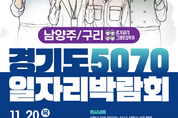 경기도와 경기도일자리재단이 11월 20일 남양주체육문화센터에서 ‘경기도 5070 일자리박람회 in 남양주+구리’를 개최한다. ‘경기도 5070 일자리박람회’는 도내 중장년 구직자의 재취업을 지원하는 ‘경기 5070 그레잇잡투어(Gray it-job tour)’의 하나로 마련됐다. 남양주일자리센터, 남양주시니어클럽 등 지역 일자리 유관기관과 협력해 5070세대 구직자에게 맞춤형 취업 기회를 제공할 계획이다. 올해 7월 수원시를 시작으로 도내 31개 시군을 순회하며 도민의 접근성을 강화했으며, 채용 상담은 물론 경력 재설계 프로그램까지 종합적인 취업 지원 서비스를 제공하는 통합형 일자리 행사다. ‘남양주+구리 박람회’에는 서창산업(주), ㈜케이미트팜 등 도내 우수기업 30개사가 참여해 인사 담당자가 직접 현장 면접을 진행한다. 이외에도 40여 개사가 간접 채용 방식으로 이력서를 접수해 폭넓은 채용 기회를 마련한다. 행사장 내에는 이력서·자기소개서 클리닉 커리어 코칭 재무 상담 시니어 유망직업 체험 등 구직자의 취업 역량 강화를 위한 부대 프로그램도 함께 운영된다. 한편 이번 행사는 오는 11월 18일 양주시 소재 경기종합섬유지원센터에서 개최되는 ‘양주시2040