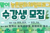 (성남뉴스) 평택시는 오는 4월부터 농업기술센터에서 도시민의 정서적 안정과 농촌 문화 가치 확산을 위한 '2026년 봄맞이 농촌문화체험 프로그램’을 운영한다. 이번 프로그램은 자연 재료를 활용해 도시민들이 일상 속 스트레스를 해소하고 농업·농촌을 친숙하게 느낄 수 있도록 기획됐으며, 3일부터 16일까지 교육생을 모집한다. 교육 과정은 실습 중심의 4개 강좌로 구성되어 시민들에게 다채로운 즐거움을 선사할 예정이다. 주요 내용은 △평택 특산물을 활용한 로스팅 및 홈카페 메뉴 만들기 △버려지는 자원을 재활용하는 리사이클링 양말목 공예 △천연 아로마 에센스로 화장품을 직접 만드는 힐링 아로마 클래스 △나무에 온기를 담아내는 현대 우드버닝 등 자연 친화적인 취미 활동으로 꾸며진다. 특히 이번 교육은 어렵게 느껴졌던 ‘탄소중립’이나 ‘지역 상생’이라는 가치를 평택 특산물로 맛있는 메뉴를 만들고 예쁜 소품을 빚어보는 활동에 녹여내, 시민들이 일상에서 즐겁고 친근하게 경험할 수 있도록 구성했다. 평택시 농업기술센터 관계자는 “이번 봄맞이 프로그램이 시민들에게는 배움의 즐거움과 휴식을, 농촌에는 활력을 불어넣는 계