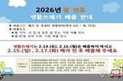 (성남뉴스) 충주시는 2026년 설 명절 연휴 동안 쾌적한 도심 환경을 유지하고 시민과 귀성객의 생활 쓰레기 배출 불편을 최소화하기 위해 설 연휴 쓰레기 관리 종합대책을 추진한다고 10일 밝혔다. 연휴 전에는 불법투기 단속반을 운영해 다중이용시설 및 상습 불법투기 지역을 중심으로 단속을 강화하고, 가로 청소를 철저히 해 깨끗한 도시환경을 조성한다. 또한 환경공단과 합동으로 명절 선물세트류의 과대포장 및 분리배출 표시 위반 여부를 점검해 불필요한 폐기물 발생을 억제하고 재활용 자원의 올바른 분리배출을 유도할 계획이다. 생활쓰레기 수거는 2월 15일(일)과 2월 17일(화)에 업무가 중단된다. 시는 관리사무소, 이·통장 마을 방송 등을 통해 사전에 휴무일을 안내하고, 시민들에게 2월 14일과 2월 16일 양일간 생활쓰레기 배출 자제를 홍보할 예정이다. 연휴 기간 동안 자원순환과는 민원대응반을 운영해 생활쓰레기 관련 민원에 신속히 대응할 계획이다.. 김동철 자원순환과장은 “시민과 귀성객 모두가 깨끗한 환경에서 설 명절을 보낼 수 있도록 쓰레기 관리 종합대책을 차질 없이 추진하겠다