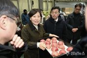 (성남뉴스) 예산군은 송미령 농림축산식품부 장관이 지난 7일 예산농산물유통센터를 방문해 설 성수품인 사과의 저장 및 공급 상황을 점검했다고 밝혔다. 이번 방문은 설 명절을 맞아 사과 수요가 증가함에 따라 안정적인 저장 물량 확보와 원활한 공급 체계를 점검하기 위해 이뤄졌다. 송미령 장관은 농산물유통센터의 저온저장 시설과 선별·출하 과정을 직접 살피고 “성수품 공급이 원활하게 이뤄질 수 있도록 관리해 달라”고 당부했다. 군은 지역 농산물의 안정적인 유통을 위해 관계 기관과 긴밀히 협력하고 있으며, 이번 장관 방문을 계기로 명절 성수품의 원활한 공급과 농가 소득 안정에 더욱 힘쓸 계획이다. 군 관계자는 “예산농산물유통센터는 지역에서 생산된 사과를 안정적으로 저장·공급하는 핵심 시설”이라며 “설 명절을 앞두고 군민과 소비자 모두가 체감할 수 있는 수급 안정이 이뤄질 수 있도록 최선을 다하겠다”고 말했다.