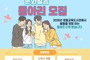 성남뉴스 관리자 기자 | 영월교육도서관(관장 권예순)은 ‘2026년 문화활동 동아리’를 2월부터 12월까지 운영한다고 4일 밝혔다. ‘문화활동 동아리’는 영월교육도서관 강좌 수강생 및 수료자로 구성된 자발적 학습 모임으로, 지역 교육공동체 활성화와 자율적 평생학습 문화 조성을 위해 마련됐다. 2026년에는 기존에 운영됐던 2개 동아리를 운영할 예정이며, 신규 동아리 운영을 희망하면 소정의 서식에 따라 신청할 수 있다. 신청 방법은 2월 4일부터 2월 10일까지 영월교육도서관 누리집을 통해 서식을 내려받아 작성 후 문화 활동 담당자에게 방문하여 접수 가능하다. 권예순 관장은 “이번 ‘문화활동 동아리’는 자율적 학습동아리 활동으로, 동아리 활동을 통해 도서관 행사에 참여하여 지역사회에 재능을 기부하고 정보를 공유하며 적극적으로 나눔을 실천할 수 있는 장을 마련하겠다.”고 전했다. 자세한 사항은 영월교육도서관 누리집을 참고하거나 종합자료실로 문의하면 된다.