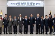 부산광역시교육청이 ‘협약형 특성화고’ 과정을 통해 부산에 정주하는 조선해양플랜트와 전력반도체 분야의 지역 맞춤형 핵심 인재를 양성하기 위한 체계 구축에 나섰다. 부산시교육청은 지난 25일 오후 교육청 국제회의실에서 부산시, HJ중공업, 아이큐랩, 국립한국해양대, 동의대, 부산테크노파크, 한국조선해양플랜트협회, 경남공고, 금샘고와 ‘2026년 협약형 특성화고 육성지원 업무협약’을 체결했다고 밝혔다. 협약식에는 김석준 교육감과 박형준 시장을 비롯해 유상철 HJ중공업 대표, 김권제 아이큐랩 대표, 류동근 한국해양대 총장, 한수환 동의대 총장, 김형균 부산테크노파크 원장, 정석주 한국조선해양플랜트협회 전무, 양병춘 경남공고 교장, 오상흔 금샘고 교장 등이 참석했다. ‘협약형 특성화고’는 지역·국가에 필요한 특수 산업분야, 지역기반 산업 인재 육성을 위해 지자체-교육청-기업-특성화고 등이 협약을 통해 지역에 필요한 맞춤형 교육을 실현하는 특성화고등학교이다. 부산시교육청은 그동안 교육부의 ‘2026년 협약형 특성화고 육성계획’에 따라 지역 특성화고를 중심으로 부산시와 조선해양플랜트·전력반도체 관련 기업, 대학