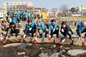 대전 유성구는 21일 유성구청 앞 유성천변에서 ‘2026년 세계 물의 날 기념 하천 정화 및 탄소중립 캠페인’을 실시했다. 이번 캠페인은 3월 22일 ‘세계 물의 날’을 맞아 물 환경 보전의 중요성을 알리고 생활 속 탄소중립 실천 문화를 확산하기 위해 마련됐으며, 시민과 환경단체, 공공기관이 함께 참여하는 민관 협력 행사로 진행됐다. 세계 물의 날은 물의 소중함과 물 부족 문제에 대한 인식을 높이고, 지속 가능한 물 관리의 중요성을 알리기 위해 1992년 UN 총회에서 지정한 국제 기념일로, 매년 세계 각국에서 다양한 물 환경 보전 활동이 추진되고 있다. 행사에서는 동자개 등 토종물고기 치어 2만 마리를 방류하고, 시민을 대상으로 탄소중립 생활 실천 방법을 홍보했다. 또한, 물의 날 기념 작품 전시회와 하천 주변 쓰레기 수거 등 환경정화 활동도 진행됐다. 정용래 유성구청장은 “세계 물의 날을 맞아 물 환경의 중요성을 되새기고 생활 속 탄소중립 실천이 확산하는 계기가 되길 바란다”라며 “앞으로도 깨끗한 물 환경 조성을 위해 시민 참여형 환경 보전 활동을 추진하겠다”라고 말했다.