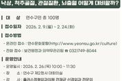 (성남뉴스) 연수구는 지역 주민에게 신뢰도 높은 건강 정보를 제공하기 위해 관내 의‧약 단체와 협력해 ‘맞춤형 건강강좌 사업’을 본격 추진한다. 지난달 27일 연수구는 연수구 의‧약 단체(의사회‧한의사회‧치과의사회‧약사회)와 지역 주민을 대상으로 계절별 건강강좌 운영을 위한 업무 협약을 체결했다. 이번 협약을 통해 연수구와 의‧약단체는 각 분야 전문 의료인이 참여하는 건강강좌를 분기별로 운영하며, 주민 건강 증진을 위해 상호 협력할 예정이다. 첫 번째 강좌는 이달 26일 오전 10시 연수구 제2청사에서 개최된다. 이번 강좌는 전재균 플러스정형외과 신경외과 전문의가 강사로 나서 ‘낙상, 척추골절, 관절질환, 뇌출혈 어떻게 대비할까?’를 주제로 일상생활에서 발생할 수 있는 사고와 질환의 예방 및 관리 방법을 주민 눈높이에 맞춰 알기 쉽게 설명할 예정이다. 강좌는 연수구민 100명을 대상으로 진행되며, 고령층을 비롯해 건강관리에 관심 있는 주민 누구나 참여할 수 있다. 참여자 모집은 9일부터 연수문화포털 및 전화 접수를 통해 진행된다. 보건소 관계자는 “전문 의료인이 참여하는 계
