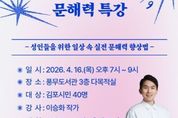 김포시 풍무도서관은 도서관주간을 맞아 오는 4월 16일 오후 7시부터 야간 인문학 프로그램으로 ‘도파민 인류를 위한 문해력 특강’을 운영한다. 이번 강의는 직장인 등 평소 낮시간에 도서관을 이용하기 어려운 시민을 위해 야간 시간대에 진행된다. 평소 쇼츠 등으로 긴 글을 읽기 어려워진 현대인들을 위해 일상 속 실전 문해력을 향상하며 독서를 더욱 재밌게 즐길 수 있도록 기획됐다. 강의는 ‘도파민 세대를 위한 문해력 특강’, ‘인공지능(AI) 시대 미디어 문해력’ 등을 집필한 이승화 작가가 진행한다. 강의 신청은 4월 1일 오전 10시부터 풍무도서관 홈페이지를 통해 가능하며, 김포시민 40명을 선착순으로 모집한다.
