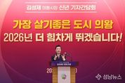 성남뉴스 관리자 기자 | 김성제 의왕시장이 5일 시청 대회의실에서 2026년 신년 기자간담회를 열고 민선8기 의왕시 주요성과와 2026년 시정 운영방향에 대해 설명하는 시간을 가졌다. 김 시장은 “지난 3년 반은 의왕시의 새로운 미래를 준비하며 역동적으로 도약해 온 시간이었다”며, “대규모 도시개발과 복선전철 사업을 비롯해 교육과 복지, 문화‧예술, 일자리, 안전에 이르기까지 도시 전반에 걸쳐 혁신적인 변화를 만들어 왔다”고 평가했다. 특히, 오랫동안 해결되지 못했던 숙원사업들이 해결된 것을 의왕시의 주요 성과로 설명하며, 대표적인 사례로 의왕 문화예술회관 착공, 인덕원~동탄 및 월곶~판교 복선전철 착공, 내손중고통합학교 개교, 의왕 종합병원 유치 등을 꼽았다. 또한, 초평지구와 청계2지구 내 기업·투자 유치, 부곡커뮤니티센터 착공, 의왕역~판교 간 프리미엄버스 및 초평동 똑버스 신설, 의일로2 개통 등 도로망 확충, 22개 맨발걷기길 조성, 백운호수 생태탐방로 및 백운호수공원 개장, 의왕야구장 및 금천천 파크골프장 개장, 글로벌인재센터 부곡분원 개소, 노인 버스 무료승차 지원사업 추진, 장애인 힐링쉼터 개소