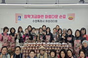 성남뉴스 관리자 기자 | 수원시여성리더회가 5일 행궁동 어울림센터 공용주방에서 ‘장학기금 마련 젓갈 포장 행사’를 열었다. 김미애 수원시여성리더회 총회장과 이지영 수원시여성단체협의회 명예회장 등 회원 20여 명이 참여해 명란젓과 낙지젓 등 4종의 젓갈을 소포장해 판매했다. 수익금은 장학금으로 기부할 예정이다. 김미애 총회장은 “장학기금 마련에 동참해 주신 모든 분께 감사드린다”며 “이번 행사가 학생들의 미래를 응원하는, 작은 힘이 되길 바란다”고 말했다. ‘수원시 여성지도자대학’ 수료생으로 구성된 수원시여성리더회는 2004년 출범 이후 한부모가정 지원, 저소득 중·고등학생 장학금 후원, 복지관 중식 봉사, 소외계층 김장 봉사, 헌혈 캠페인 등 지역사회를 위한 나눔·봉사 활동을 꾸준히 하고 있다.