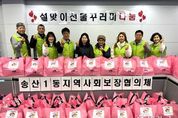 성남뉴스 관리자 기자 | 의정부시 송산1동주민센터는 2월 4일 송산1동 지역사회보장협의체와 함께 ‘설맞이 선물꾸러미’ 50세트를 제작해 관내 취약계층에 전달하고 안부를 확인했다고 밝혔다. 이번 나눔은 설 명절을 맞아 독거노인 등 취약계층 50가구를 직접 방문해 이뤄졌으며, 선물꾸러미에는 설렁탕, 떡국떡, 만두, 과일 등의 명절 음식과 함께 수제 쌍화탕, 마스크, 물티슈 등 겨울철 건강관리에 도움이 되는 후원물품이 포함됐다. 또한 클나무지역아동센터 이용 아동들이 직접 만든 찐빵도 함께 담아 따뜻한 정을 더했다. 특히 고독사 예방을 위한 ‘고위험 위기가구 일촌맺기’ 및 ‘수(水)색대’ 사업 대상자에게도 선물꾸러미가 전달되며, 민관이 협력해 이웃을 돌보는 적극적인 복지 실천이 이뤄졌다. 장동원 위원장은 “설 명절을 외롭게 보낼 어르신 등 취약계층을 위해 나눔에 동참해주신 위원들과 후원자분들께 감사드린다”며 “앞으로도 어려운 이웃을 알리고 살피는 협의체 역할에 최선을 다하겠다”고 말했다. 전선녀 동장은 “지역사회 돌봄에 힘써주시는 지역사회보장협의체의 정성 어린 마음이 이웃에게 잘 전해져 따뜻한 명절이 되길