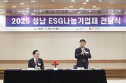 - 지난해 1000만원 이상 지역사회 환원…총 15억2432만원 성남시(시장 신상진)는 지역사회를 위해 기부를 실천한 20개사에 ‘ESG(환경·사회·지배구조) 나눔기업 인증패’를 전달했다고 5일 밝혔다. ESG(환경·사회·지배구조) 나눔기업은 경기사회복지공동모금회를 통해 1000만원 이상을 기부한 기업과 법인을 말한다. 경영 이익금을 지역사회에 환원해 사회적 책임을 다하는 기업·법인 인증에 의미를 둔다. 인증패 전달식은 이날 오후 4시 시청 3층 한누리에서 신상진 성남시장과 김효진 경기사회복지공동모금회 사무처장, 20개사 기업 대표 등이 참석한 가운데 진행됐다. 이날 인증패를 받은 기업·법인은 △NH농협은행 성남시지부 △성남제일새마을금고 △성남동부새마을금고 △삼영전자공업㈜ △㈜엔에스쇼핑 △㈜코원에너지서비스 △미션시스텍㈜ △㈜리워터(옛 에코비트워터) △㈜모백스 △㈜명세아이앤씨 △신구대학교 △㈜디엔에스사회적기업 △㈜더클레르(옛 중원기업) △테크밸리㈜ △㈜삼성환경 △상호통상㈜ △㈜프로켐 △한성산업㈜ △㈜티앤디소프트 △㈜아티타야 등이다. 이들 기업·법인은 지난 한 해 동안 1000만~2억6600만원을 기탁해 총 15억2432만원을 지역사회에 환원했다. 해당 기탁금