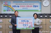 성남뉴스 관리자 기자 | 장안구 북수원신협이 지난 4일, 민족 최대 명절 설을 맞아 소외된 이웃들에게 따뜻한 희망을 전하기 위해 각종 식품과 생필품 등으로 구성된 생필품세트(어부바박스) 70개를 조원1동에 전달했다. 윤주남 북수원신협 이사장은 “설 명절을 맞아 지역의 어려운 이웃들이 조금이나마 따뜻한 명절을 보내시길 바라는 마음으로 이번 나눔을 준비했다”며 “앞으로도 지역사회와 함께하는 나눔 활동을 지속해 나가겠다”고 말했다. 윤현섭 조원1동장은 “매해 명절마다 잊지 않고 이웃사랑을 실천하며 지역사회의 버팀목이 되어주시는 북수원신협에 깊은 감사를 드린다”며 “정성이 담긴 생필품 세트는 홀몸 어르신 등 도움이 필요한 가구에 소중히 전달하여 따뜻한 명절을 보낼 수 있도록 하겠다”고 화답했다. 한편, 북수원신협은 매년 설과 추석 명절마다 정기적으로 생필품 세트를 기부하고 있을 뿐만 아니라, 지역 주민을 위한 다양한 사회공헌 활동을 꾸준히 펼치며 상생의 가치를 실현하는 데 앞장서고 있다.